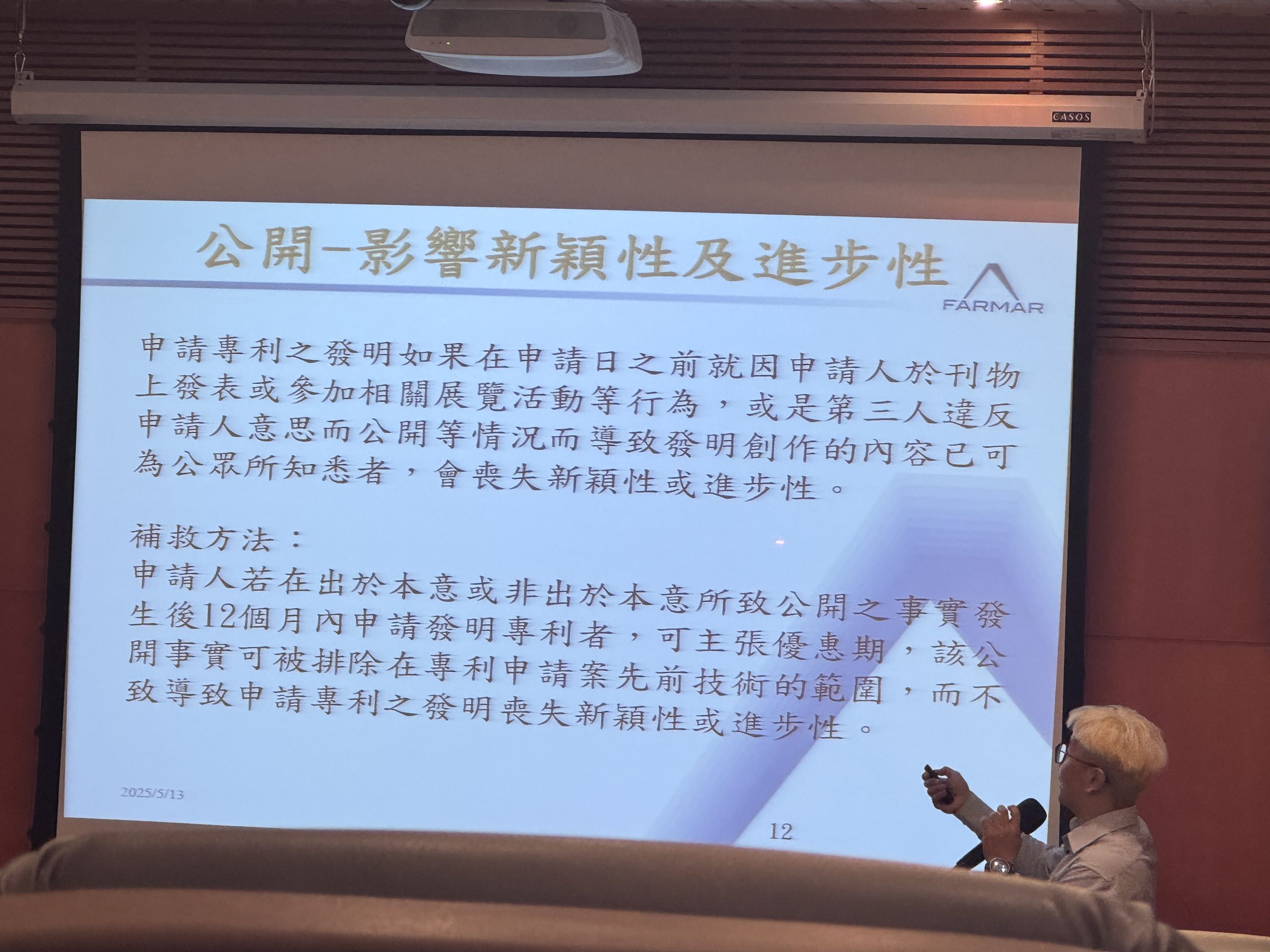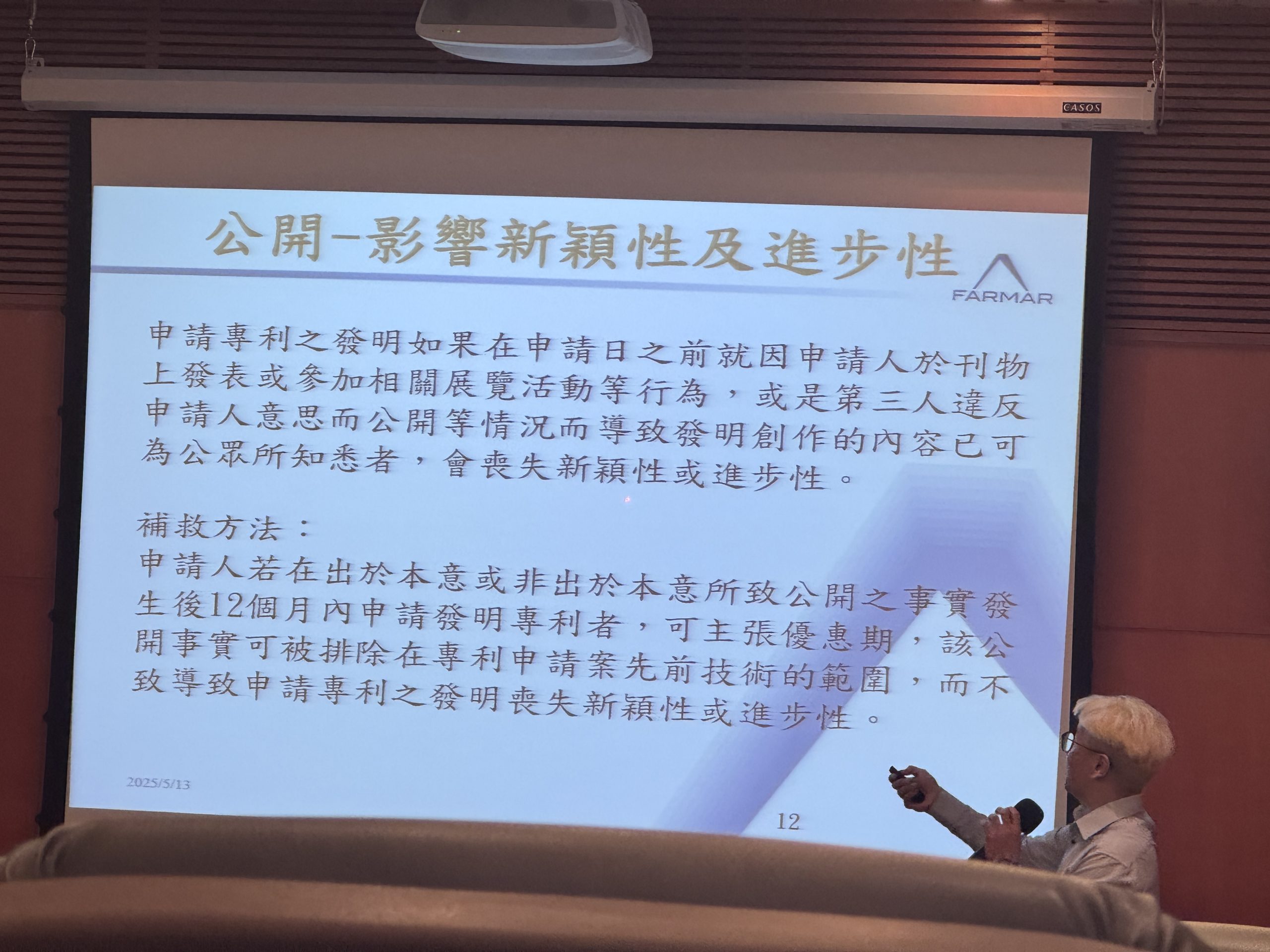 為協助本校教師在研發初期即導入智財思維,有效提升研究成果後續專利申請成功率與技術商品化潛力,本場座談會將聚焦於**「研究計畫融入專利元素」與「早期專利佈局」的整合策略**。邀請專利事務所專利工程師,分享如何在計畫構思階段即納入專利佈局考量、如何撰寫有助於專利申請的技術描述內容,強化未來專利申請的成功機率與核准範圍。